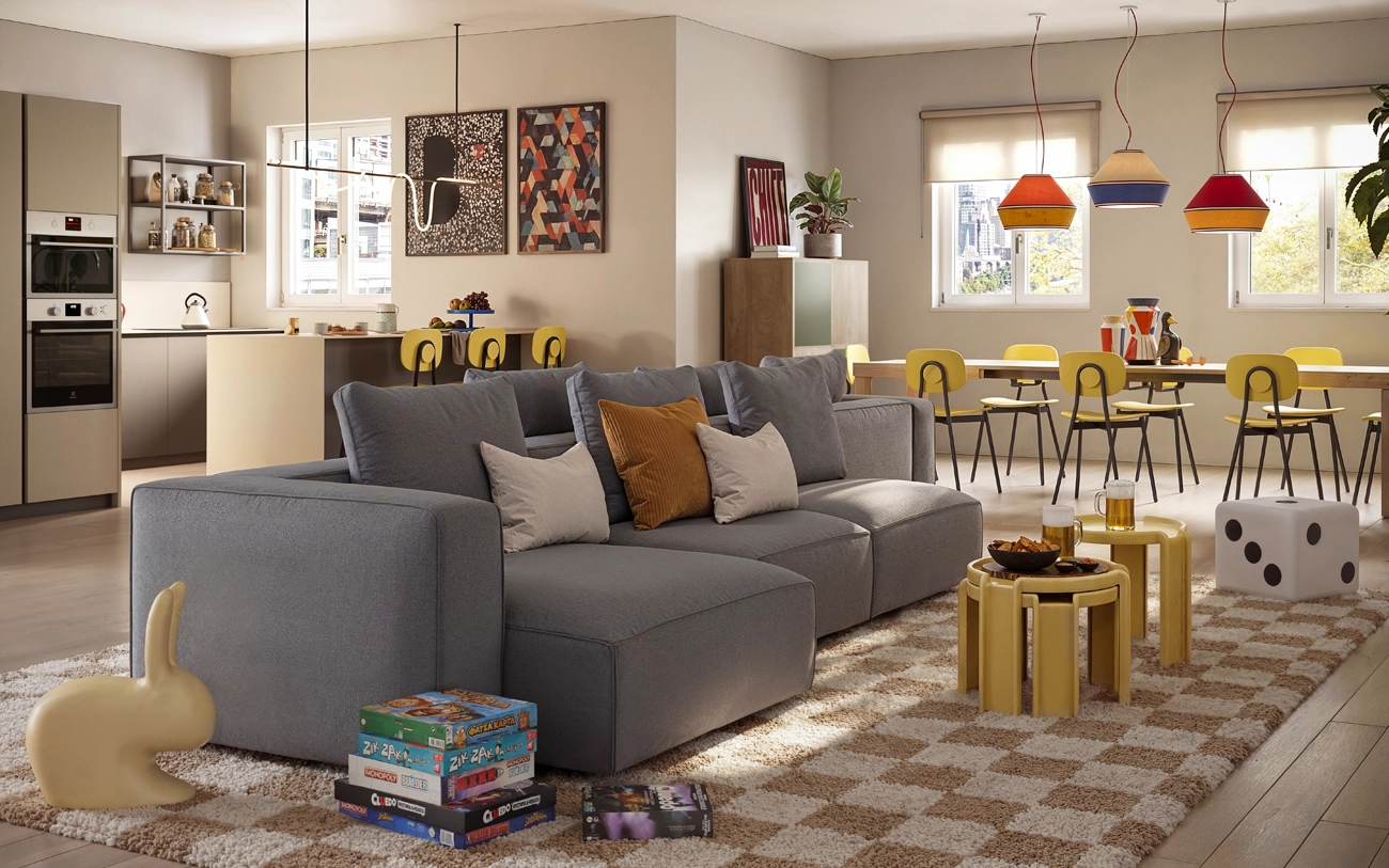 Il comfort non ha regole fisse. Il divano Soft di Cuborosso ti lascia libero di creare: sposta i moduli e inventa il tuo spazio. Un design morbido, definito dalle caratteristiche cuciture a vista e dal tessuto Penelope 20 Light Grey che lo veste con eleganza, per un living in continua evoluzione.